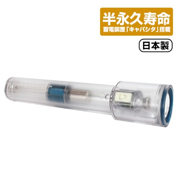 本当に過酷な状況において、光は多くの危険を排除してくれる。だが、電源確保ができない場合、電池が消耗しきった場合、電球が割れた場合、光源をどうすればいいのか?その回答として用意されたのがこのハンディライトだ。17年間に渡って世界各国の軍、政府機関、災害現場で使用されてきた技術を用い、高精度の日本国内工業製品化を実現させた。「電池や電球が不要」であるため、長期保管の課題である電池の液漏れや自然放電などの懸念点も払拭。「本体を片手で振るだけ」でどんな劣悪な環境でもただちに点灯し、光が弱まればまた振れば何度でも発電・点灯するというシンプルな機構であるため、使う人、使う場所を選ばない。消耗部品が極めて少なく、数年おきの備品総入れ替えも検討せずに済み、コスト的にも抑えられる。建物出入口設置や、災害対策備蓄品として、すでに多くの官公庁が導入している。
